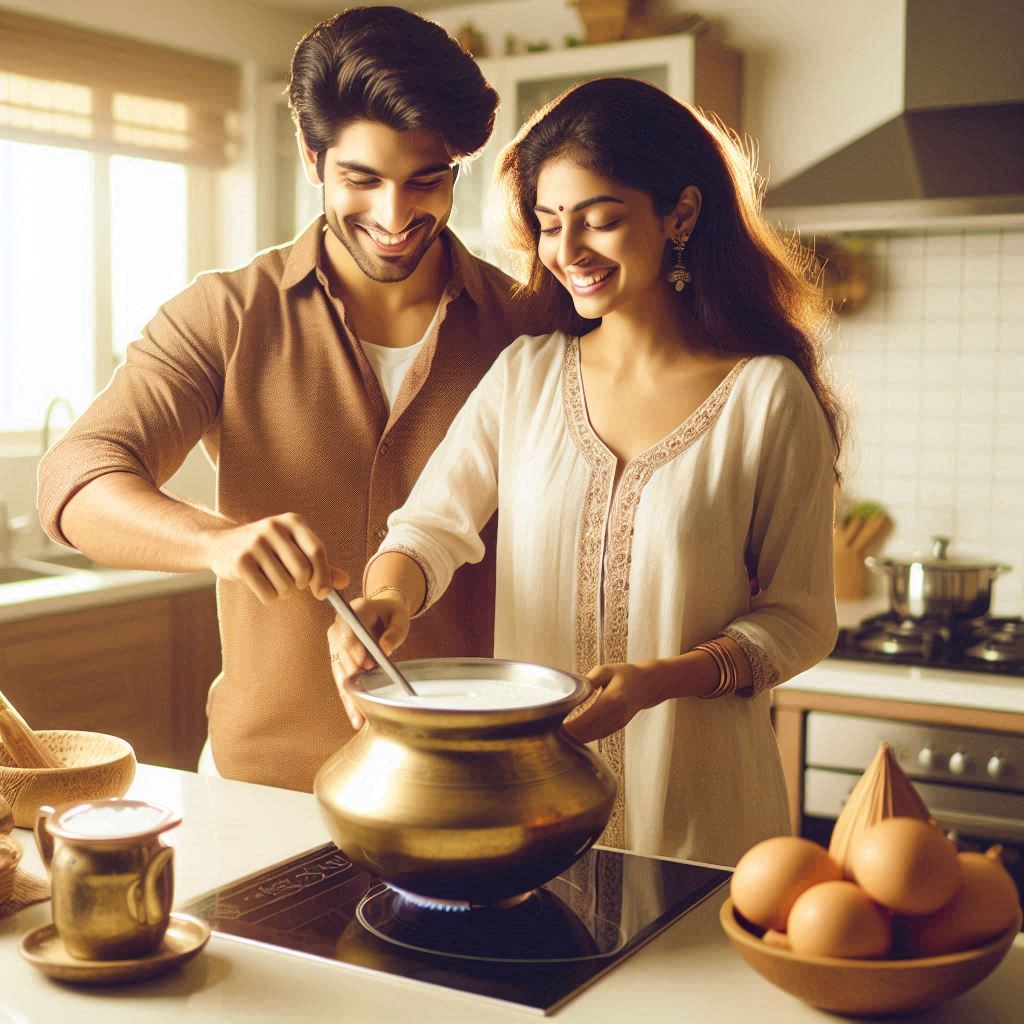 Boiling milk in the new kitchen symbolizes prosperity and abundance.